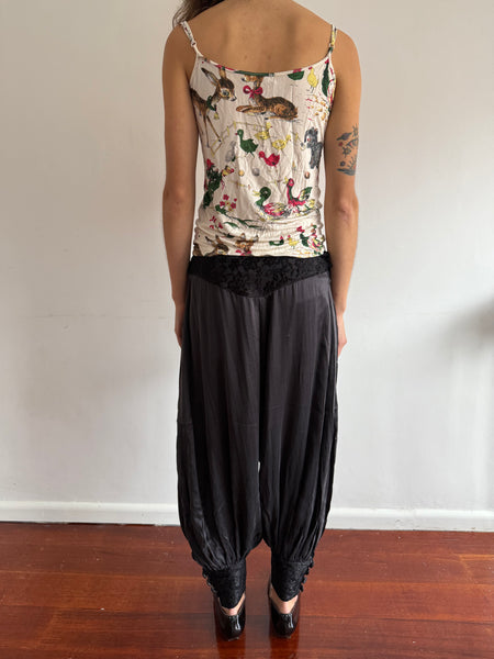 Deadstock early 2000's silk bloomers with lace detailing at waistband and cuff.