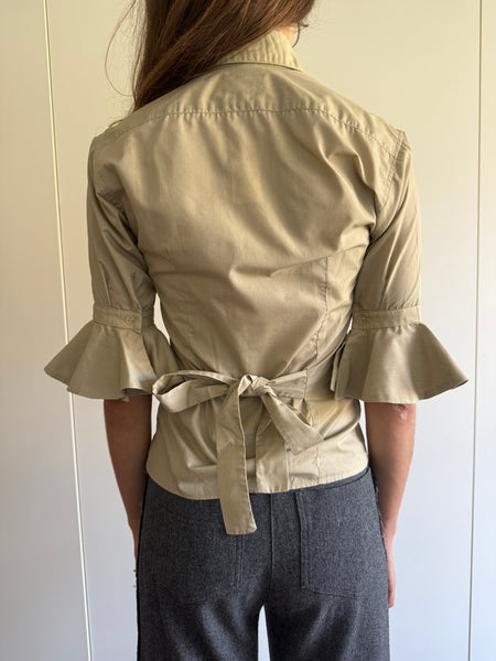 A vintage Antoni & Alison ruffle sleeve safari shirt with tie at back.