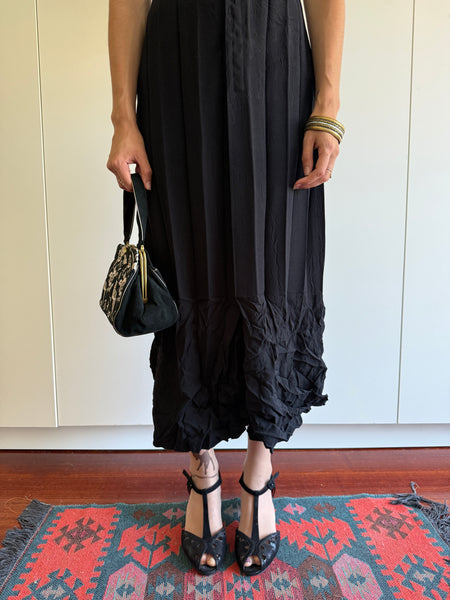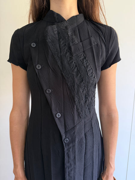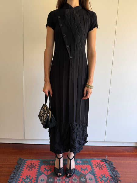 Vintage Leiko Paris high neck asymmetric permanent pleat dress with scrunch effect at bottom.