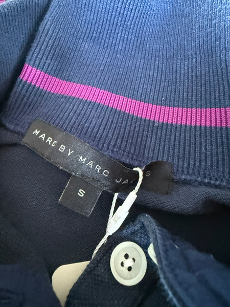 A Marc by Marc Jacobs polo shirt in navy with magenta details on ribbing.