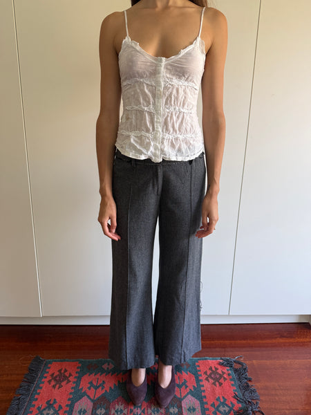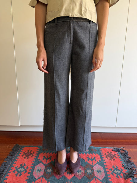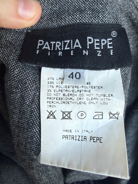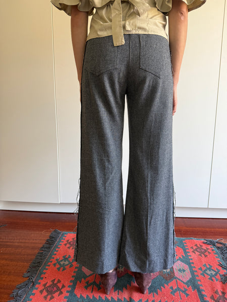 Patrizia Pepe wool blend wide leg trousers with intentional distressing at sides.