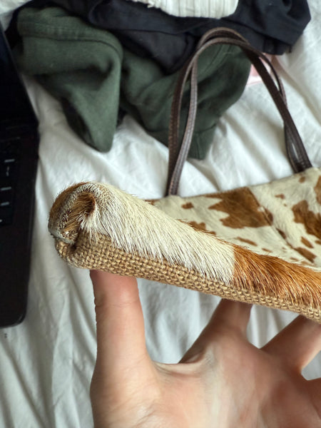 A cute vintage 2000s cowhide bag. Featuring ponyhair with cowhide pattern.Some balding at corners as shown