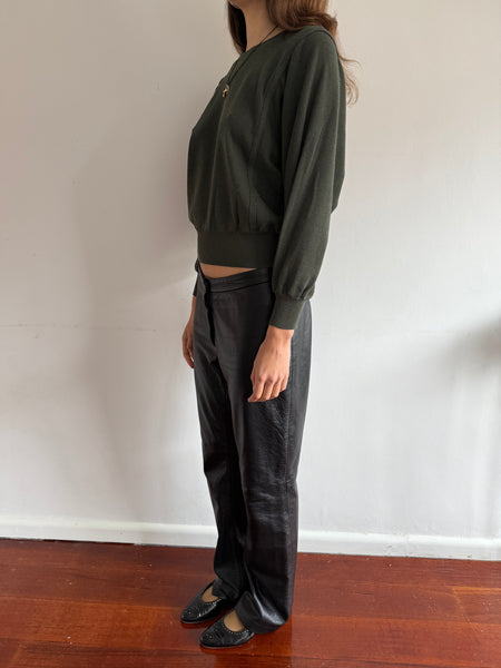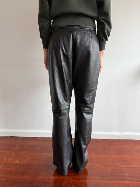 A pair of vintage leather pants. Made in Australia, marked size M and will best fit a size AU 10. Pictured on size AU 6, unpinned.